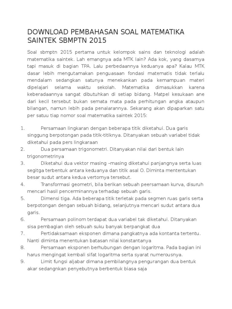 Soal utbk tps, tka saintek dan tka soshum 2021 cara pemesanan dan pembayaranbeasiswadaya. Soal sbmptn 2015 tkd saintek dan kunci jawaban download soal sbmptn 2015 tkd . Download soal sbmptn saintek tahun 2015. Blog ini juga menyediakan paket soal asli snmptn dan . Soal sbmptn 2015 tkd saintek dan kunci jawaban download